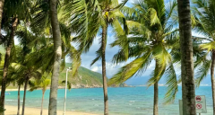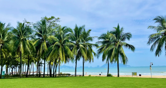 椰梦长廊是环三亚湾修建的一条海滨风景大道。置身于碧海蓝天椰子树的环境中,漫步在景观大道或海边,可以很好地感受海南的美丽与悠闲。这里的晚霞和夜景也很有名,夜晚可以在海边吃烧烤喝啤酒,看街头表演。椰梦长廊全长20公里,依湾绵延,椰树成林向西延伸至天涯湾。临海的一侧是景观优美迷人的热带植物园林,另一侧是休闲度假区,度假区里面从家庭旅馆到高品质的酒店都有。经常可以看到有人来这里拍摄婚纱照,充满了浪漫的气息。无论什么时候来,你都能感受这份悠闲。晴朗的日子,金黄色的落日晚霞将会布满整个三亚湾椰梦长廊上空。对面的凤凰岛晚上会开起激光彩灯,优美的歌声也会慢慢飘来,靠近海边会有烧烤啤酒,也有好多街头演出可以观看。悠闲地坐着,望着海边的美景,慢慢享受晚上的美好时光,真是再惬意不过了。