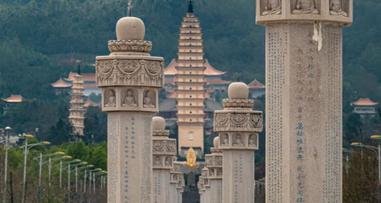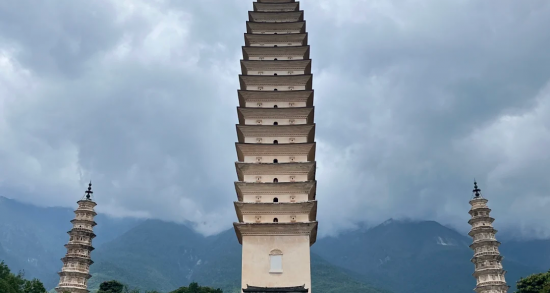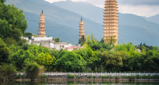 崇圣寺三塔文化旅游区分为两大部分,前区以三塔为中心,景点主要包括三塔、南诏建极大钟和雨铜观音殿;后区则是被誉为汉传佛教第一寺的崇圣寺。崇圣寺始建于唐代开元年间,经历代扩建,到宋代大理国时期达到了巅峰。根据史料记载,极盛时期的崇圣寺“基方七里,为屋八百九十间,佛一万一千四百尊,用铜四万五百五十斛,有三阁、七楼、九殿、百厦”,其规模之宏大。崇圣寺三塔,由一大二小组成。大塔又叫千寻塔,全称“法界通灵明道乘塔”与南北两小塔的距离皆70米,三座塔形成鼎足之势。崇圣寺三塔是国务院首批公布的全国重点文物保护单位,是国家重点风景名胜区大理的标志和象征。崇圣寺三塔文化旅游区是集苍洱风光、文物古迹、佛教文化、休闲度假为一体的国家AAAAA级旅游景区