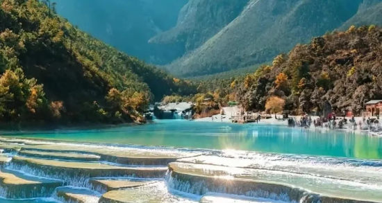 蓝月谷位于丽江玉龙雪山脚下,是玉龙雪山融水的白水河流经此地形成,池水清澈见底,而且一片奇幻的蓝色,非常震撼眼球。蓝月谷有“玉液”湖、“镜潭”湖、“蓝月”湖和“听涛”湖四个颜色各异的湖泊,还有很多小瀑布错落有致,拍照十分漂亮。
