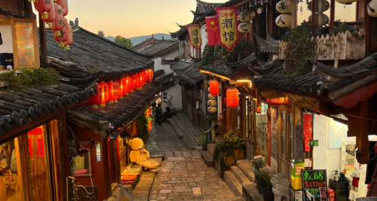 丽江古城依山而建,街巷依水流而设,曾经是茶马古道的交易市场。古城内从四方街延伸出光义街、七一街、五一街和新华街四条主干道,四条路又衍生出纵横交错的街巷,构成了以四方街为中心的古城。当年被徐霞客盛赞的木土司王府木府,就位于七一街关门口附近,在这里可以感受纳西民族建筑的内涵。