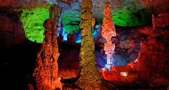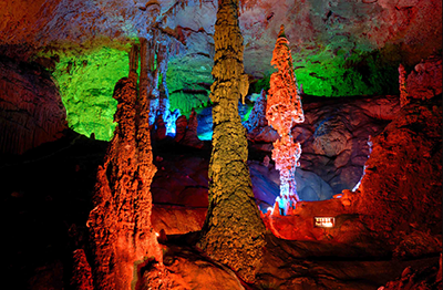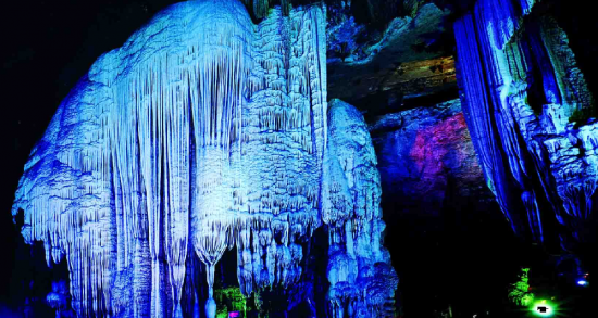 目前可参观到的溶洞大约2000米,由外自内分为下洞、大厅、上洞三大部分。沿着参观路线一路往上走,越往里越好看,也越开阔。在这里,你可以看到不同地质年代发育生长的各种乳石石柱、石塔、石幔、石瀑……仿佛进入一个光怪陆离而又异彩纷呈的世界。