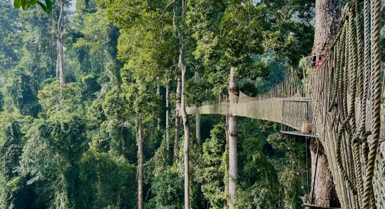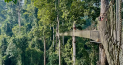 空中走廊位于西双版纳望天树景区内,是借助几十棵望天树的树干,以钢丝和尼龙绳搭建而成的一座悬空吊桥。吊桥有10多层楼高,游客可以走在上面体验空中漫步般的感觉。空中走廊全长2500余米,走上走廊,你会以一个独特的视角去观赏望天树和周围的热带雨林。放眼望去,一片郁郁葱葱,心情顿时开阔起来。不过这样摇摇晃晃的吊桥,恐高症患者好不要尝试。还可以选择走廊下地面上一条1000多米的游道,它与空中走廊形成立体环行游览线,穿行于雨林间,也是一种不错的体验。